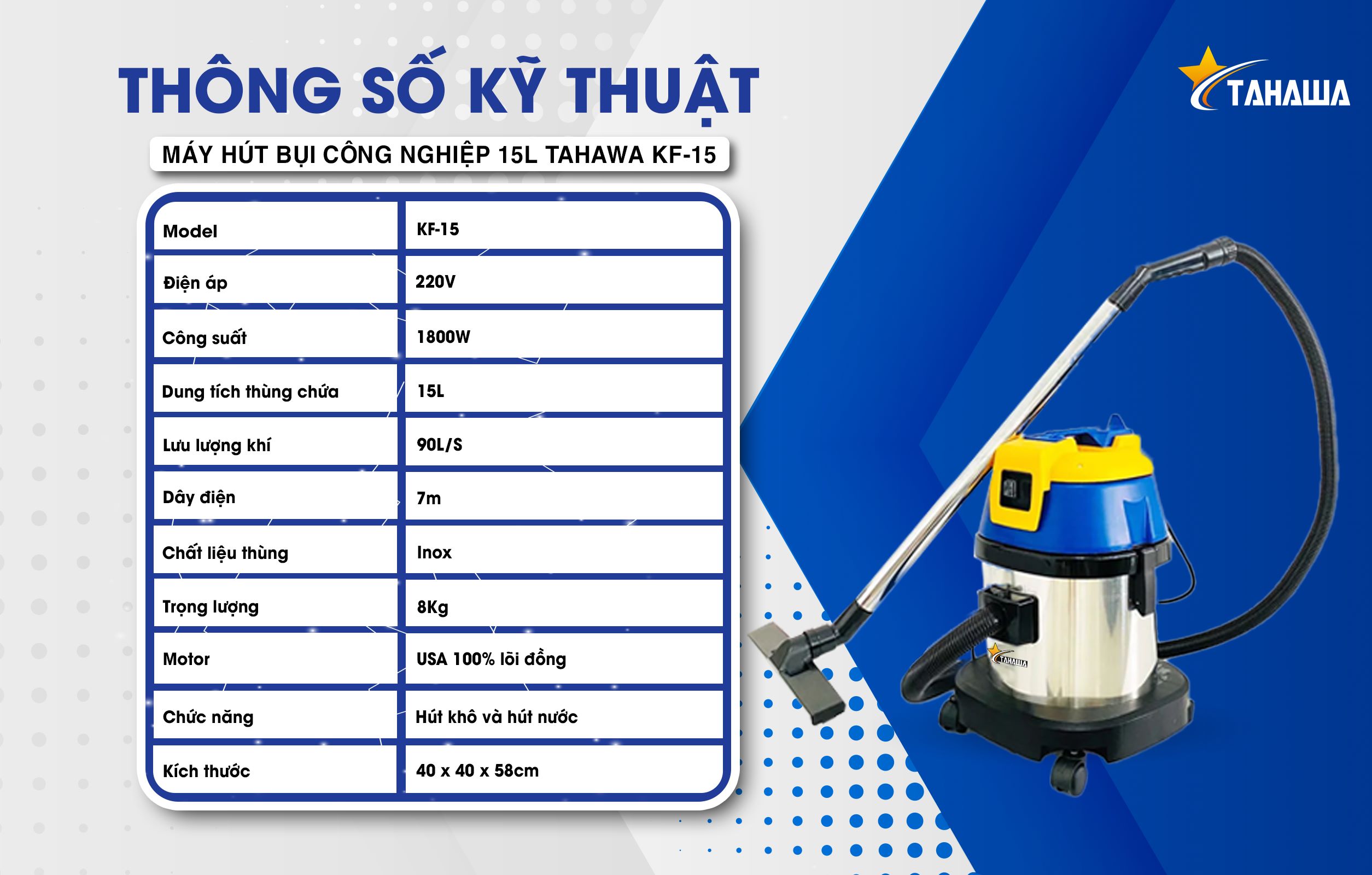 Nếu bạn đang tìm kiếm một chiếc máy hút bụi đa năng, Tahawa KF15 là một lựa chọn tuyệt vời. Với công suất 1800W và lưu lượng khí 90L/S, máy có thể hút sạch bụi bẩn một cách nhanh chóng và hiệu quả. Đặc biệt, máy có thể hút cả khô lẫn ướt, nên bạn không cần phải lo lắng về việc sử dụng máy trong những ngày mưa hay khi vệ sinh nhà tắm. Với dung tích thùng chứa 15L, bạn không cần phải thường xuyên thay thế túi lọc, tiết kiệm thời gian và công sức của bạn.