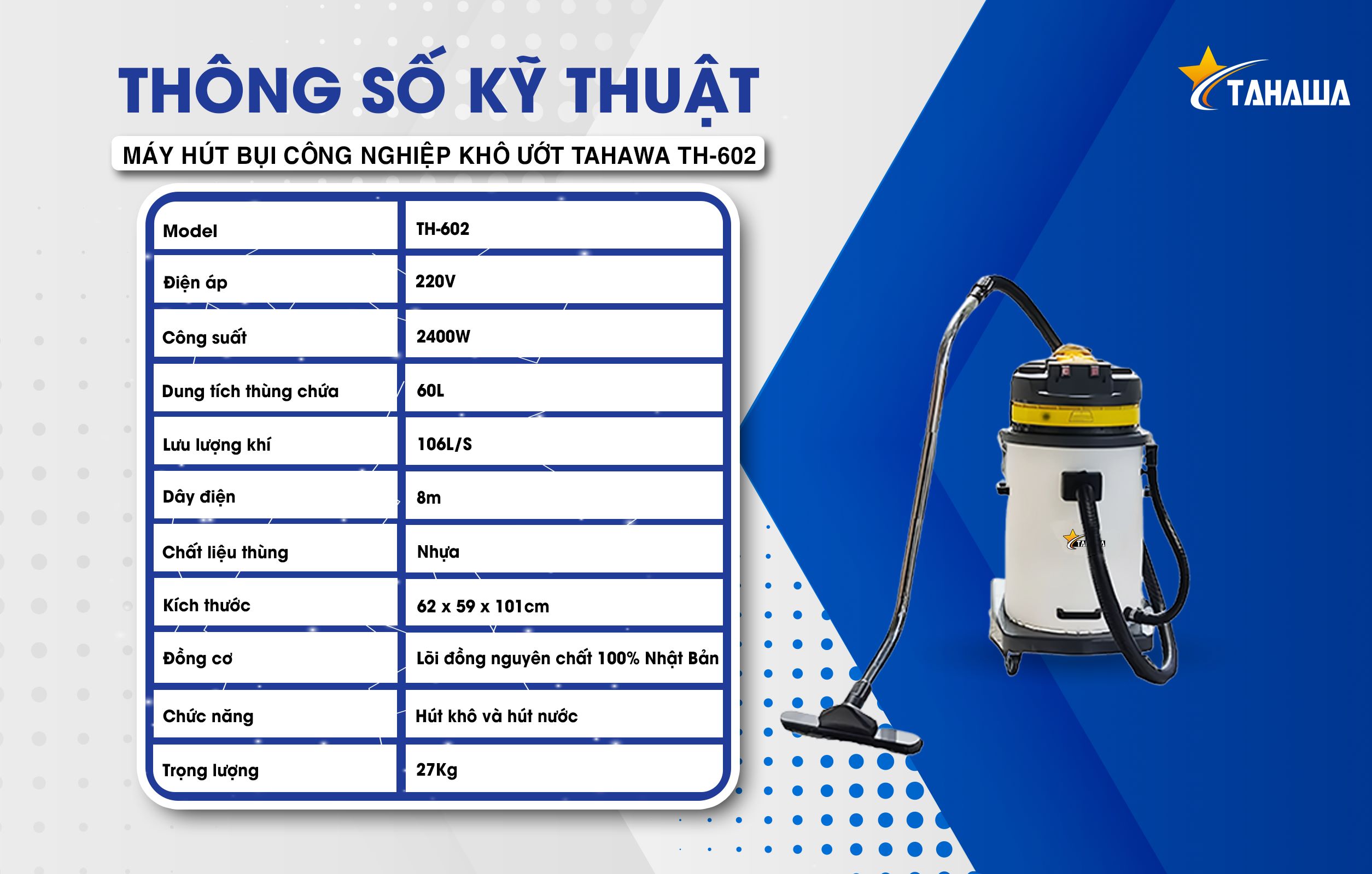 ĐẶC ĐIỂM NỔI BẬT MÁY HÚT BỤI CÔNG NGHIỆP TAHAWA TH-602