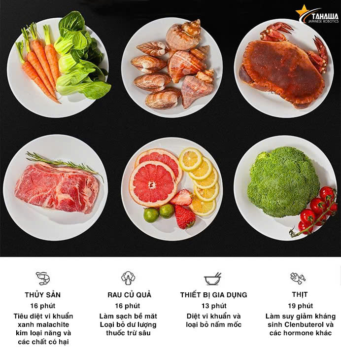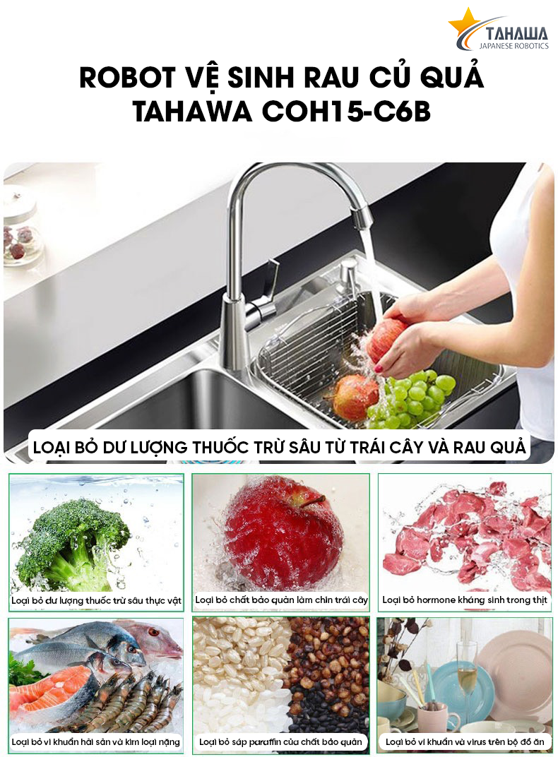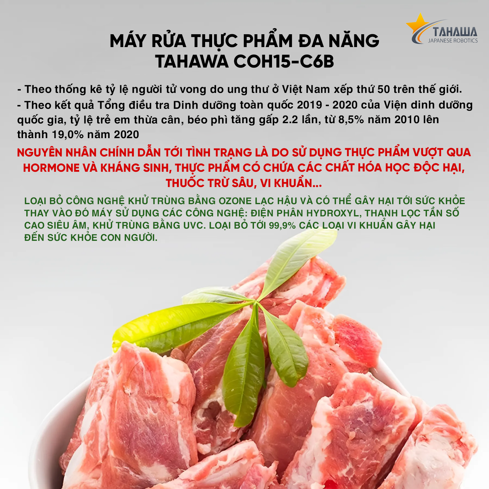 Máy khử khuẩn thực phẩm đa năng Tahawa COH15-C6B mang tới cho bạn khả năng: