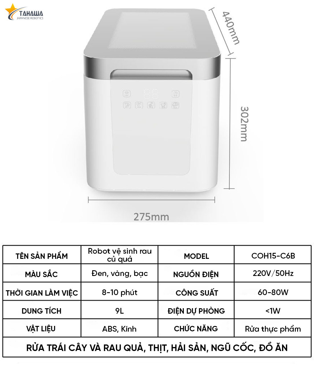 - Giới thiệu máy khử khuẩn thực phẩm, rửa thực phẩm đa năng Tahawa COH15-C6B