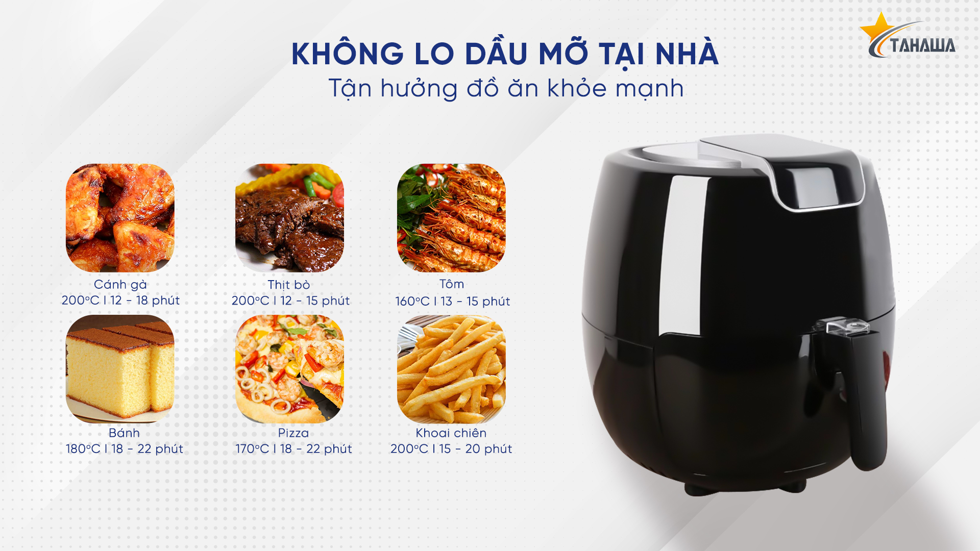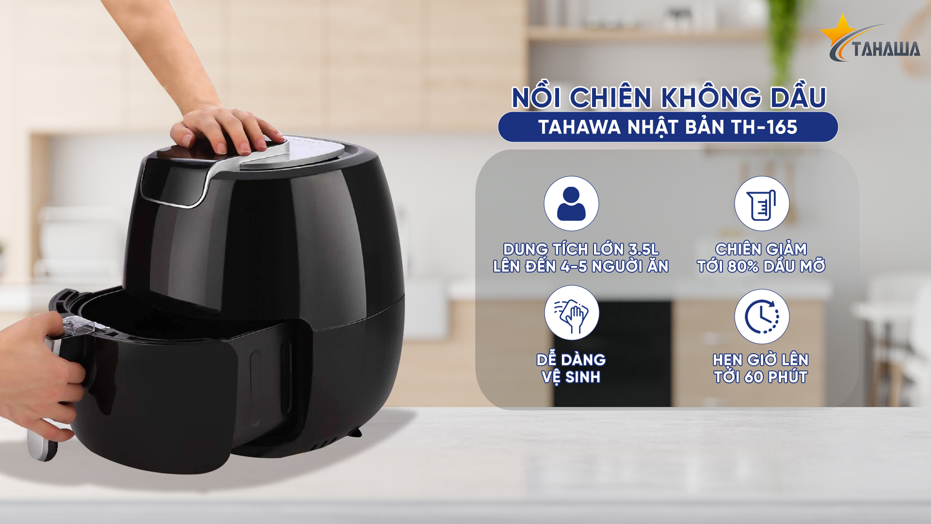 - Tên sản phẩm: Nồi chiên không dầu điện tử Tahawa TH-165