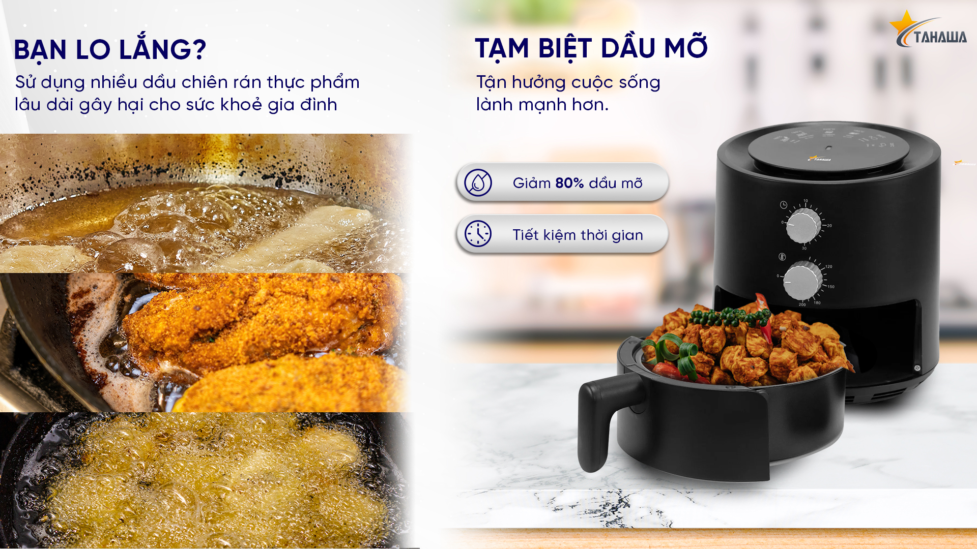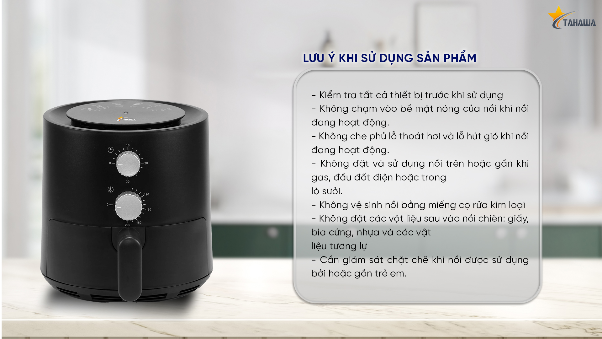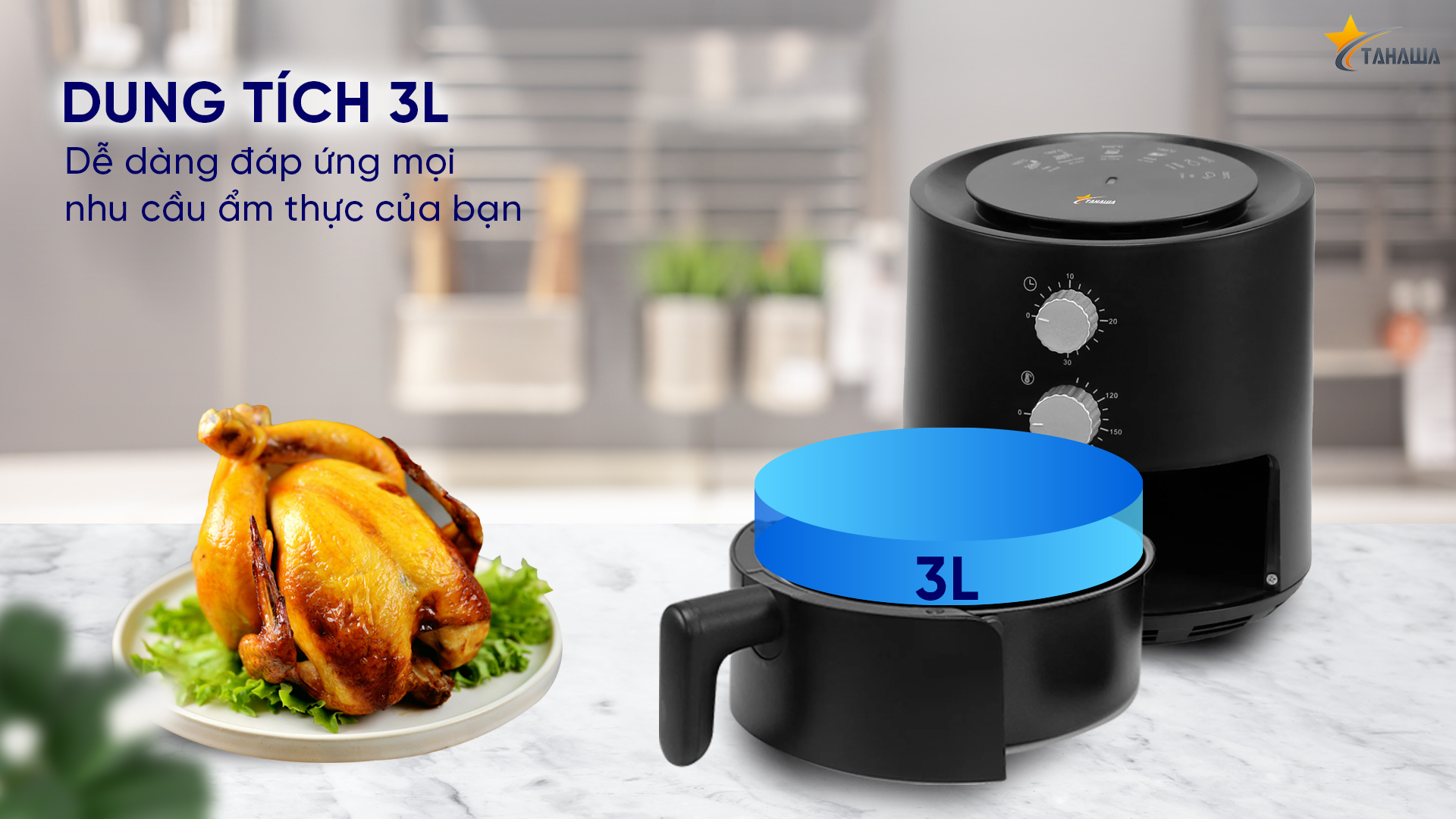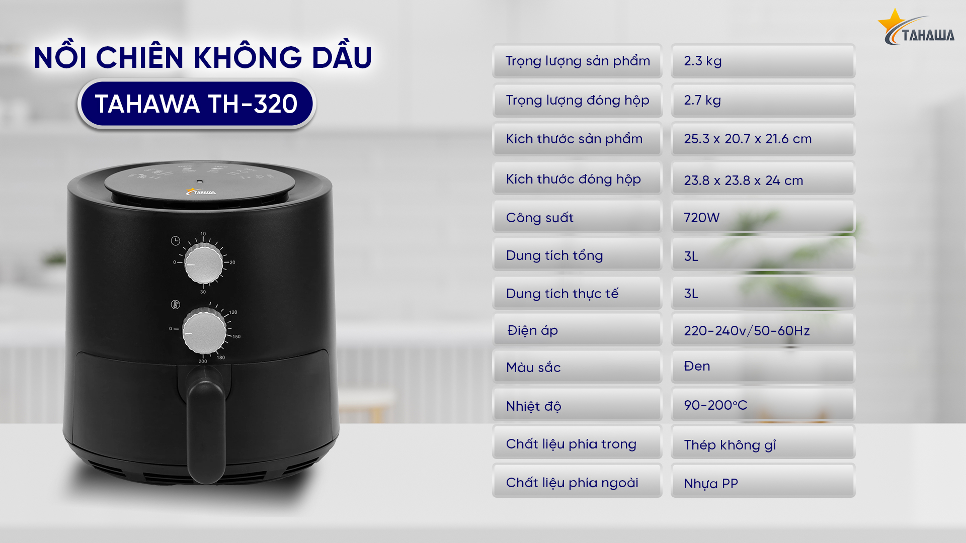 Nồi chiên Tahawa TH-320 dung tích 3 lít có thiết kế sang trọng, tinh tế, chế biến món ăn ngon, bổ dưỡng, tiện dụng trong gia đình hiện đại.