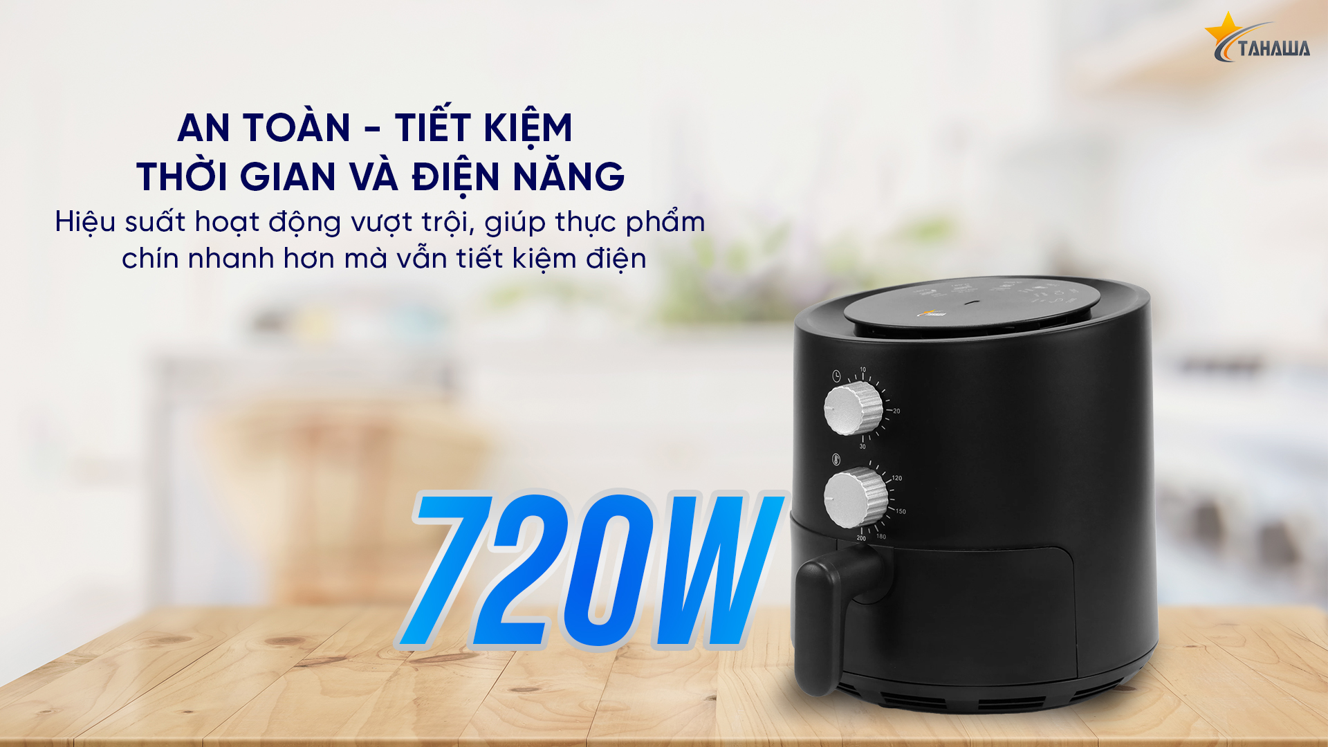 TH-320 có công suất lên tới 720W, giúp thực phẩm chín nhanh hơn mà vẫn tiết kiệm điện năng.