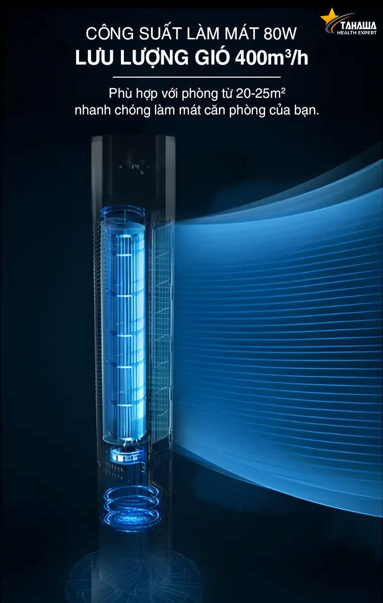 Máy làm mát Tahawa CA-7118 có kiểu dáng trang nhã, gọn gàng tiết kiệm không gian phù hợp với căn phòng có diện tích từ 20 - 25m2.