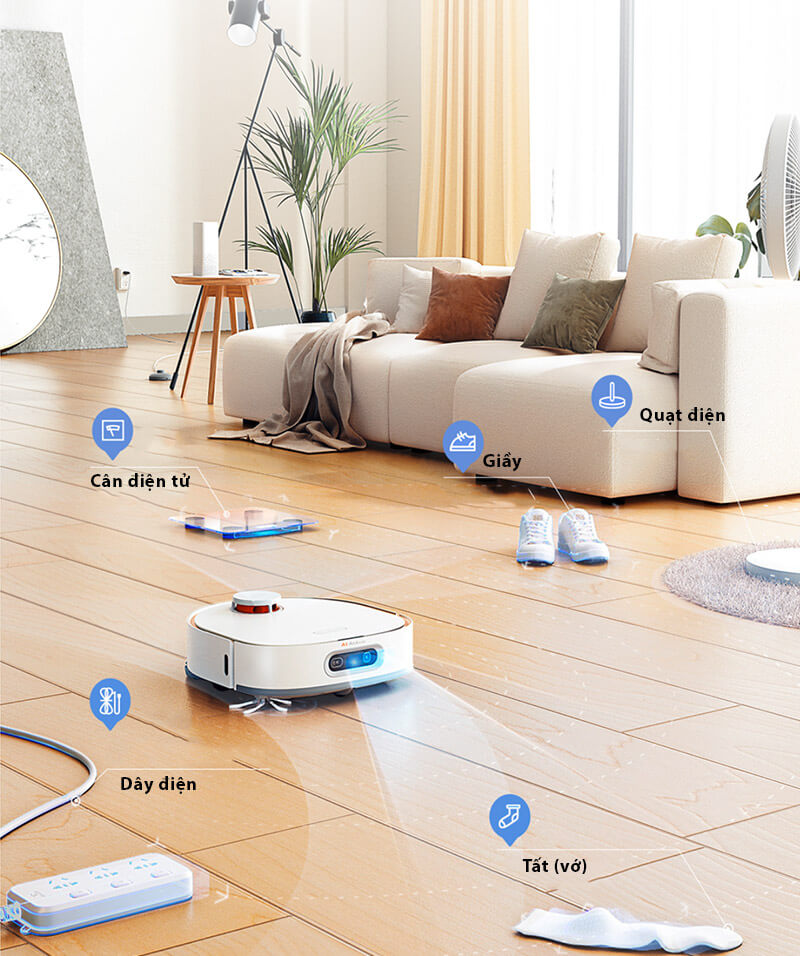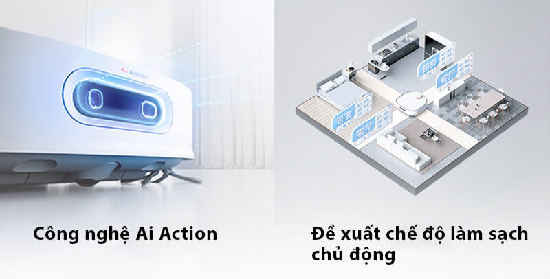 - Công nghệ tránh chướng ngại vật AI Action: Robot nhận diện và tránh các chướng ngại vật thông minh, giảm nguy cơ mắc kẹt.