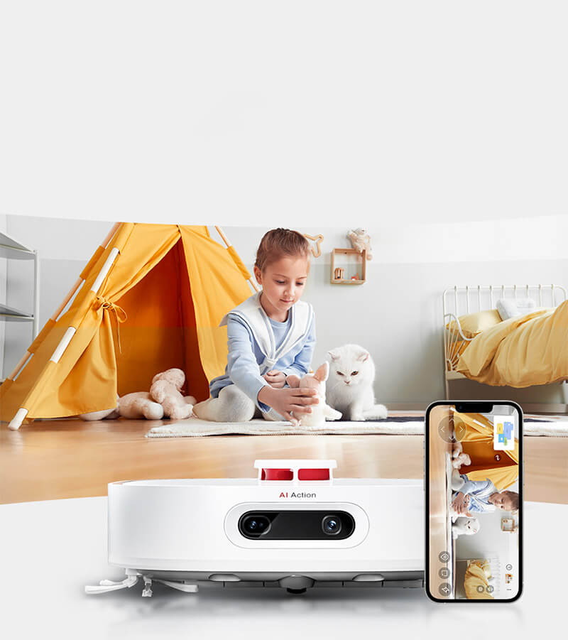 Dreame W10 Pro trang bị camera độ nét cao cho phép theo dõi hành trình làm việc của robot theo thời gian thực, hỗ trợ tương tác với người và thú cưng, lưu lại những khoảnh khắc đáng yêu.