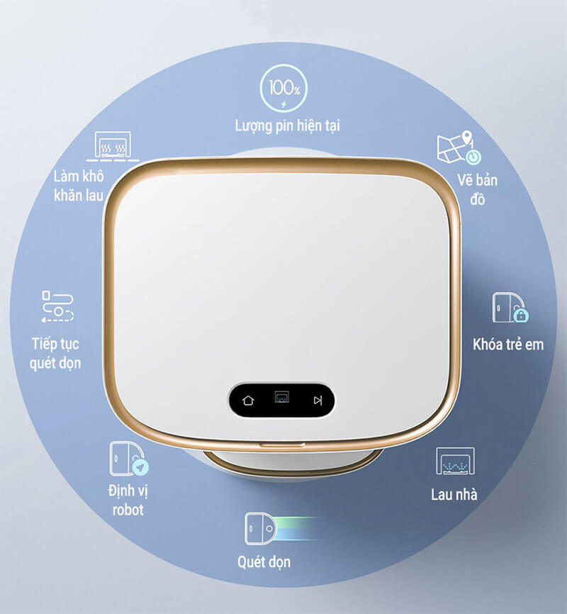 - Giặt giẻ lau tự động: 8 tia nước áp lực cao kết hợp với tốc độ xoay cao giúp loại bỏ vết bẩn.