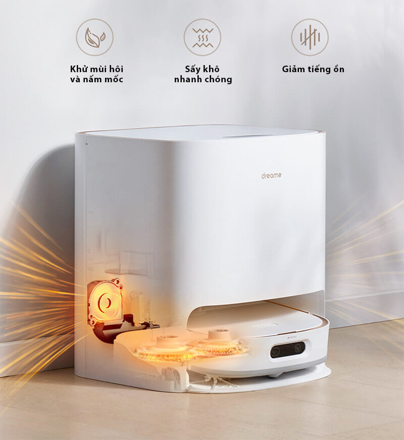 Dreame W10 Pro - Công nghệ khử khuẩn tiên tiến và làm khô giẻ lau Dreame W10 Pro sử dụng ion bạc để khử khuẩn lên đến 99,9% vi khuẩn có hại. Hệ thống sấy khô bằng khí nóng giúp hạn chế nấm mốc và mùi hôi, giữ khăn lau luôn sạch sẽ.