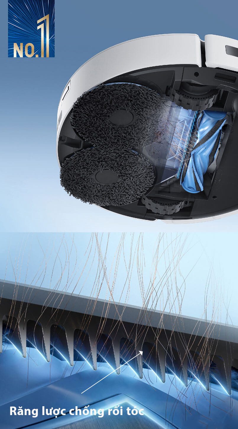 Công nghệ ZeroTangle™ trên robot hút bụi lau nhà Deebot T30S Pro với thiết kế bàn chải con lăn hình chữ V độc đáo, lông phẳng 21° và mảng răng lược kép, giúp robot dễ dàng nhổ và loại bỏ tóc, lông thú một cách hiệu quả, kể cả những sợi tóc dài và rối. Nhờ đó, bạn sẽ không còn phải mất thời gian và công sức vệ sinh bàn chải, đảm bảo robot luôn hoạt động ở hiệu suất cao nhất. Với ZeroTangle™, robot hút bụi lau nhà Ecovacs Deebot T30S Pro 2025 xứng đáng là người bạn đồng hành lý tưởng cho mọi gia đình, mang đến một không gian sống sạch sẽ và thoải mái.
