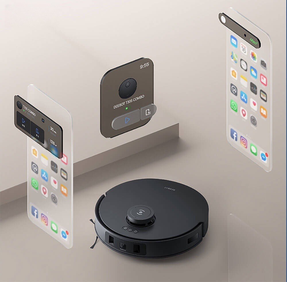 - Robot hút bụi lau nhà Ecovacs Deebot T30S Pro 2025 kết nối dễ dàng với ứng dụng Ecovacs Home trên điện thoại hoặc đồng hồ thông minh. Chỉ với vài thao tác đơn giản, người dùng có thể điều khiển robot làm sạch mọi ngóc ngách trong nhà một cách linh hoạt, giải quyết nhanh chóng các vết bẩn ngay cả khi vắng nhà, tùy chỉnh lịch trình và khu vực làm sạch theo ý muốn. Với ứng dụng, có thể tạo nên một quy trình làm sạch riêng biệt, phù hợp hoàn toàn với nhu cầu và thói quen của gia đình.