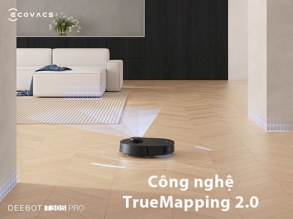 Deebot T30S Pro 2025 với tính năng TrueMapping 2.0, đảm bảo khả năng lập lộ trình di chuyển nhanh chóng và chính xác với khả năng lập bản đồ 100m2 chỉ trong 6 phút, lộ trình hướng đi thông minh để điều hướng cho các tình huống phức tạp. Tạo bản đồ nhiều tầng, phù hợp với nhà có nhiều tầng (sàn).