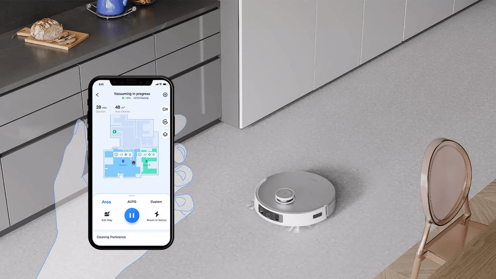 Với chổi cao su được cải tiến và lực hút 6000Pa, robot hút bụi hiệu quả hơn trên thảm mà không gây hại, đồng thời giảm tình trạng quấn tóc, lông thú cưng.