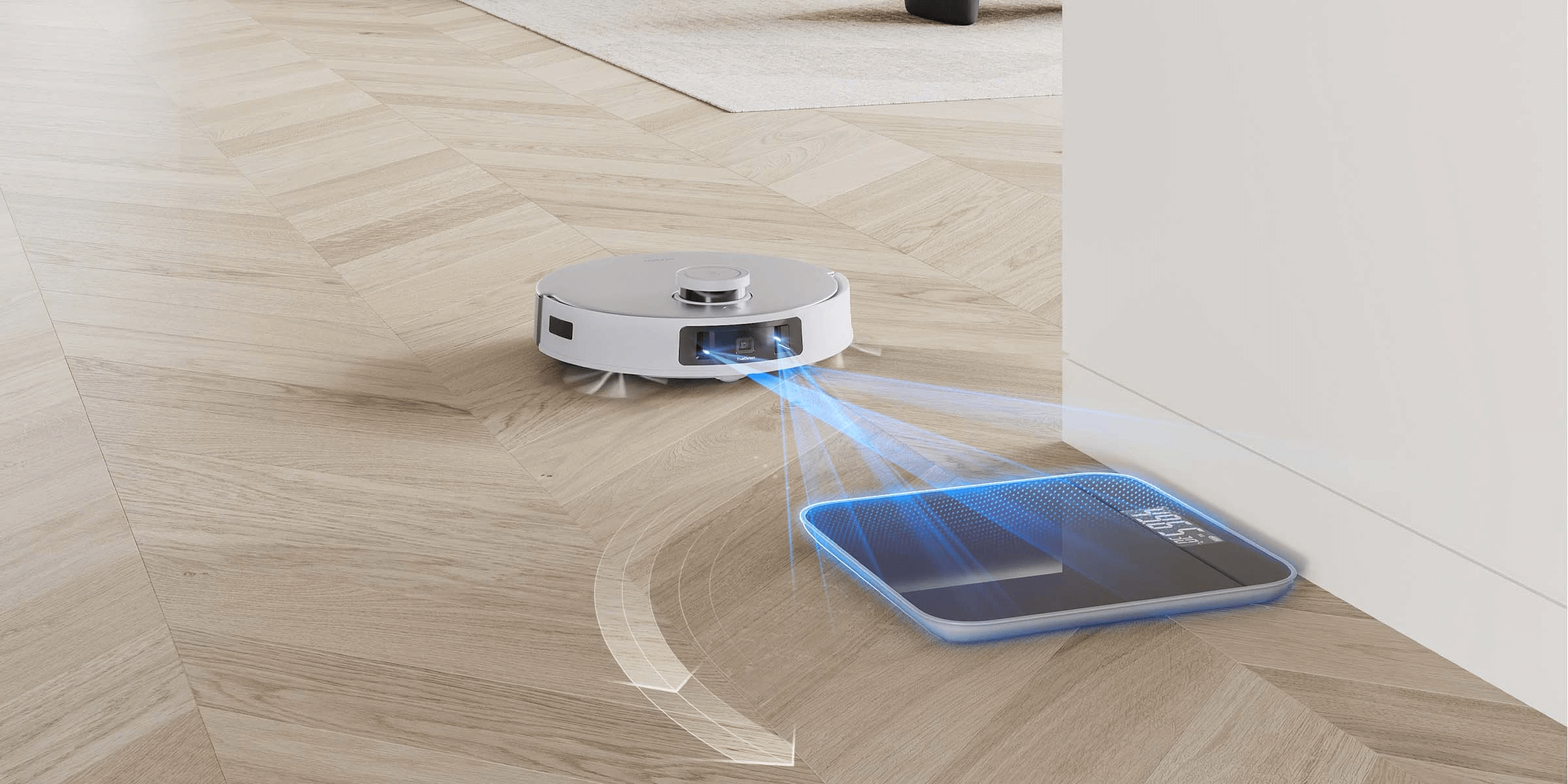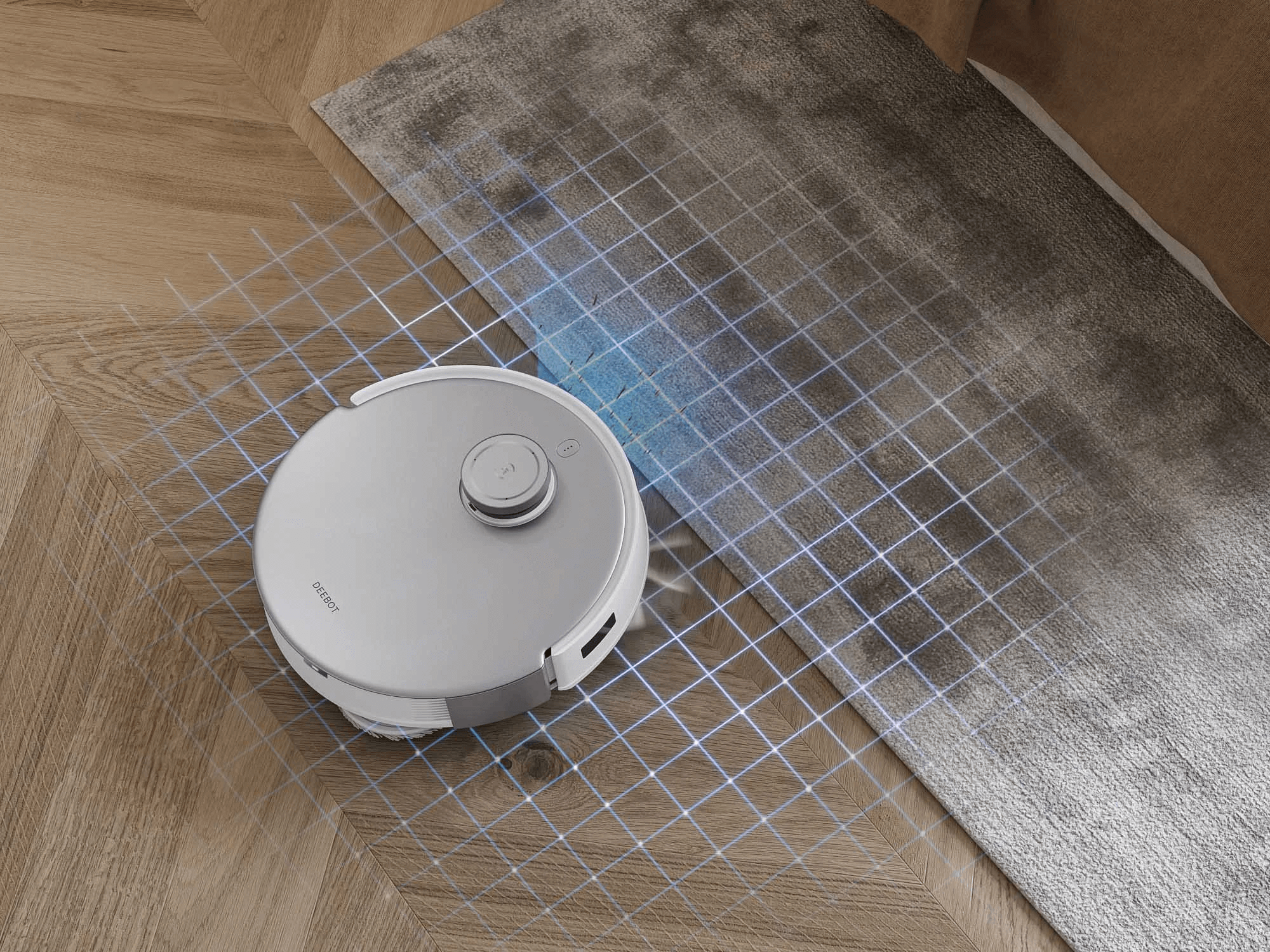 DEEBOT T20 OMNI sử dụng cảm biến siêu âm để nhận diện thảm một cách chính xác. Khi phát hiện thảm, các tấm lau tự động nâng lên, giúp robot chuyển đổi linh hoạt giữa các chế độ chỉ hút bụi, chỉ lau, hoặc kết hợp cả hai một cách mượt mà.