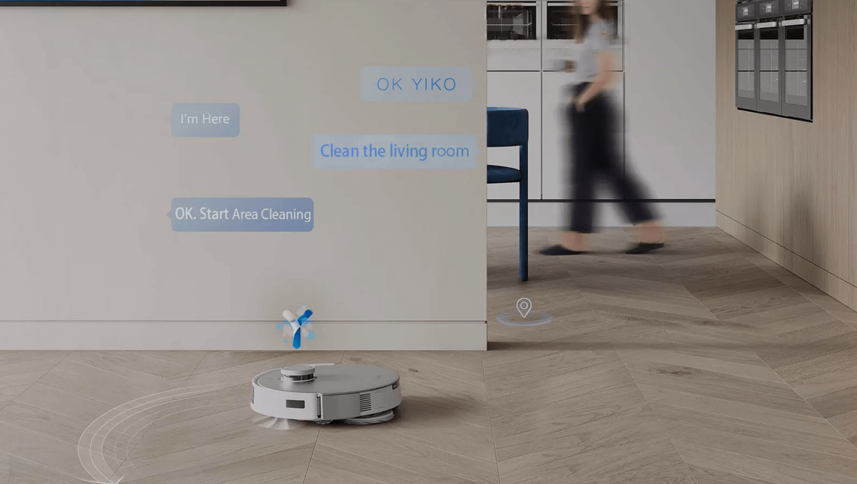DEEBOT có thể kích hoạt bằng giọng nói thông qua câu lệnh "OK YIKO". Công nghệ AI cho phép bạn dễ dàng điều khiển robot để bắt đầu quá trình làm sạch.