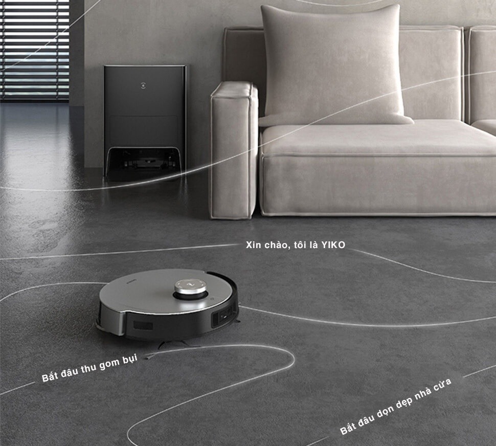 Trợ lý giọng nói YIKO thế hệ mới hỗ trợ điều khiển từ xa, chỉ cần câu lệnh “OK YIKO” để yêu cầu robot làm sạch theo ý muốn.