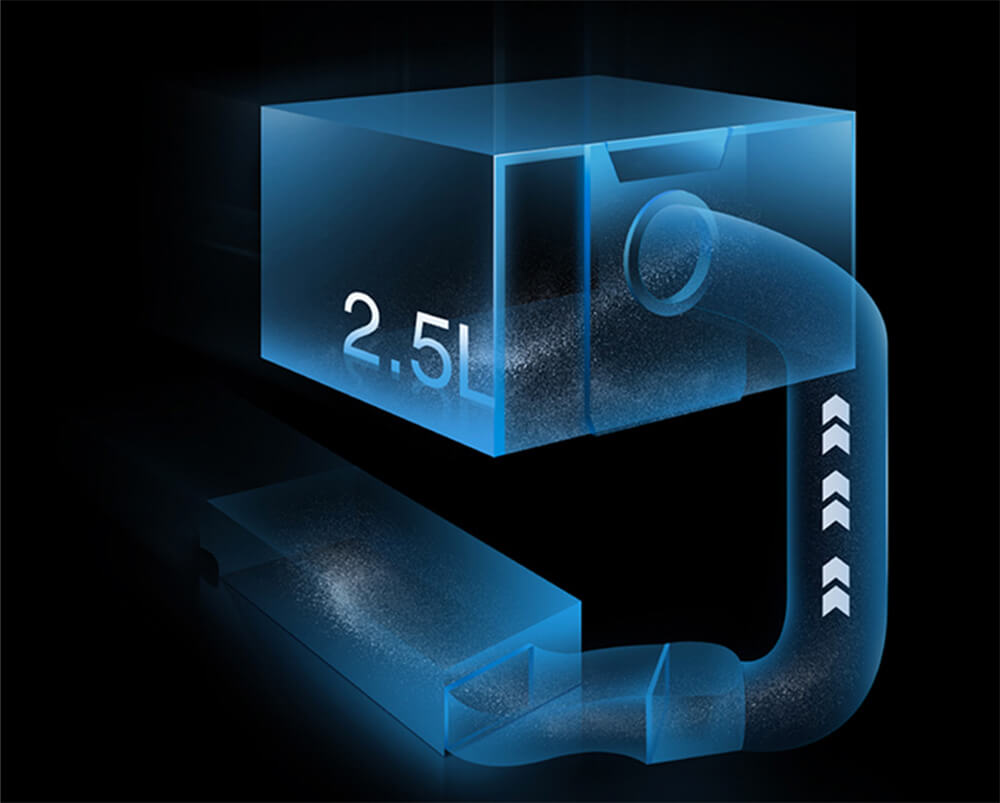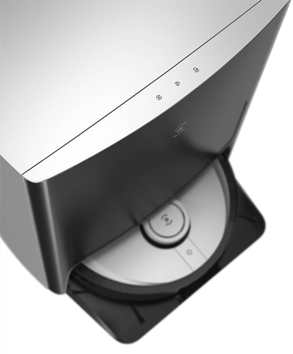 - Tự động xả bụi khi về đế sạc: Túi chứa bụi dung tích 2,5L có thể lưu trữ bụi đến 30 ngày, giảm tần suất xả bụi.