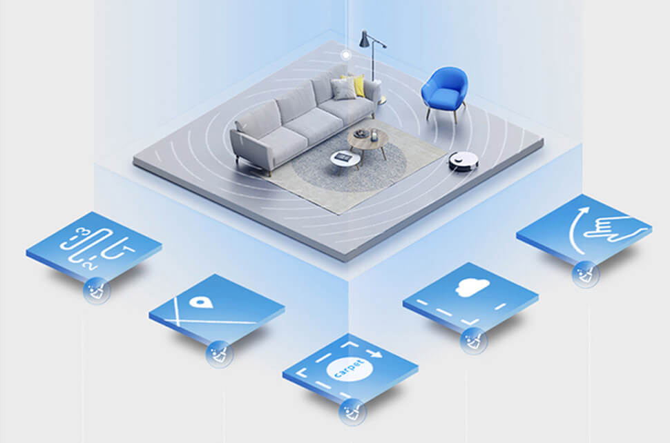 Việc thiết lập kế hoạch làm sạch được cá nhân hóa trở nên dễ dàng hơn. Đồng thời vị trí của đồ nội thất trên bản đồ 3D rõ ràng và bạn có thể làm sạch phần dưới và vùng ngoại vi của đồ nội thất được chỉ định chỉ bằng một cú trạm ngón tay
