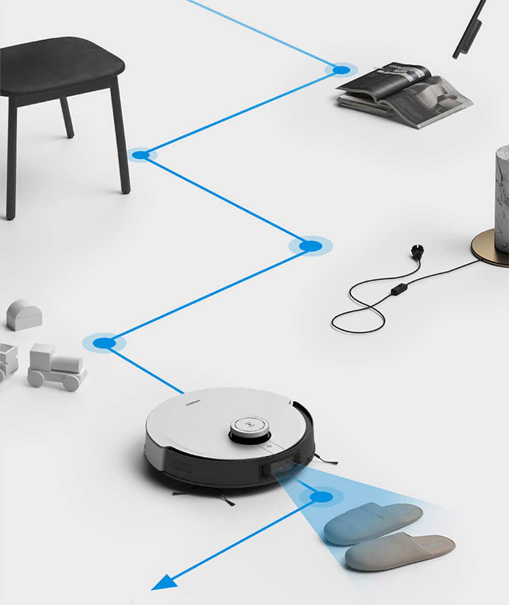 Di chuyển linh hoạt, làm sạch trơn tru, nhận dạng thông minh hình người, vật nuôi và các chướng ngại vật thông thường trên mặt đất. Tránh các vật nhỏ như giầy dép, tất, dây điện, đồ chơi, ghế chữ U...