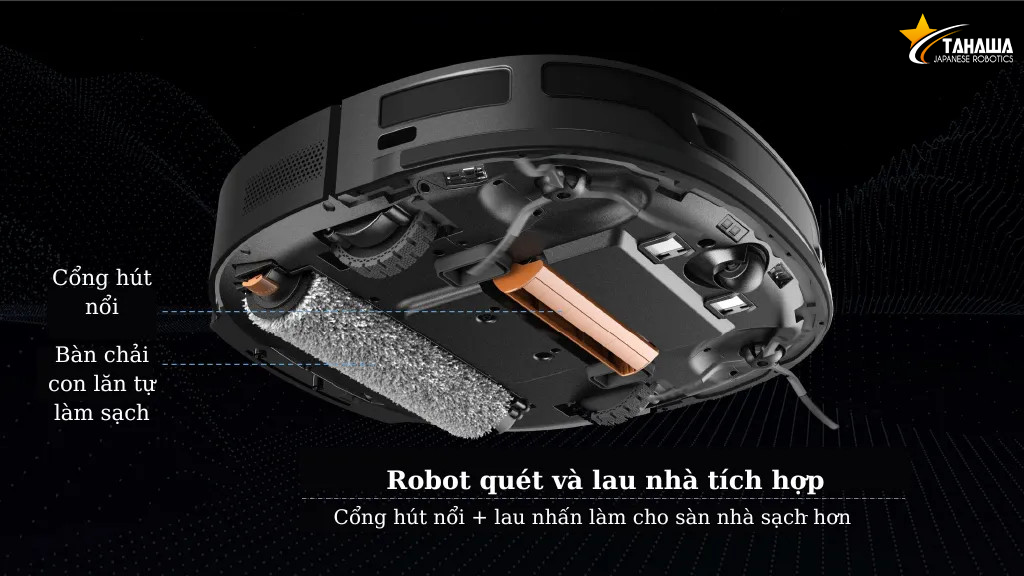 Sự khác biệt lớn nhất của robot hút bụi lau nhà tự giặt giẻ Tahawa TH-M23 với các sản phẩm đang bán trên thị trường là công nghệ Realtime clean - Công nghệ làm sạch tức thời giúp robot làm sạch con lăn ngay tại vị trí lau giúp con lăn luôn sạch và tiếp tục làm việc tại các vị trí khác.