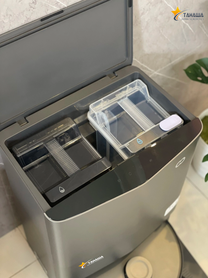 Máy đồng thời tương thích với dock sạc tự động đổ rác. Cùng với việc làm đầy pin, trạm sạc sẽ làm sạch hộp chứa bụi. Nhờ vậy, người dùng không cần tự tháo hộp bụi, đổ rác. Túi đựng bụi của Tahawa TH-A1 Mix có dung tích 2,5 lít, sức chứa dùng đủ 1-2 tháng, giữ kín và ngăn chặn bụi, vi khuẩn... phát tán ngoài không khí.