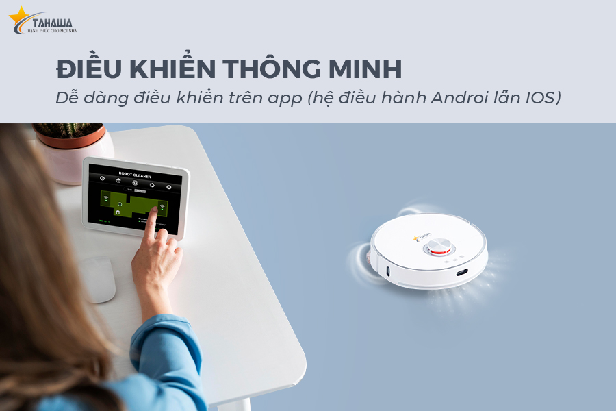 Robot Hút Bụi Lau Nhà Tự Giặt Giẻ, Tự Đổ Rác Tahawa TH-LW2 sử dụng app để thiết lập quy trình hoạt động. Thông qua ứng dụng này người dùng có thể bật/tắt, hẹn giờ cho robot làm việc. Ngoài ra còn có thể theo dõi robot hoạt động, điều chỉnh lực hút, lượng nước, thiết lập sơ đồ nhà, tường ảo, lên địa điểm hoặc chọn khu vực cho robot làm việc… mà không cần có mặt tại nhà.
