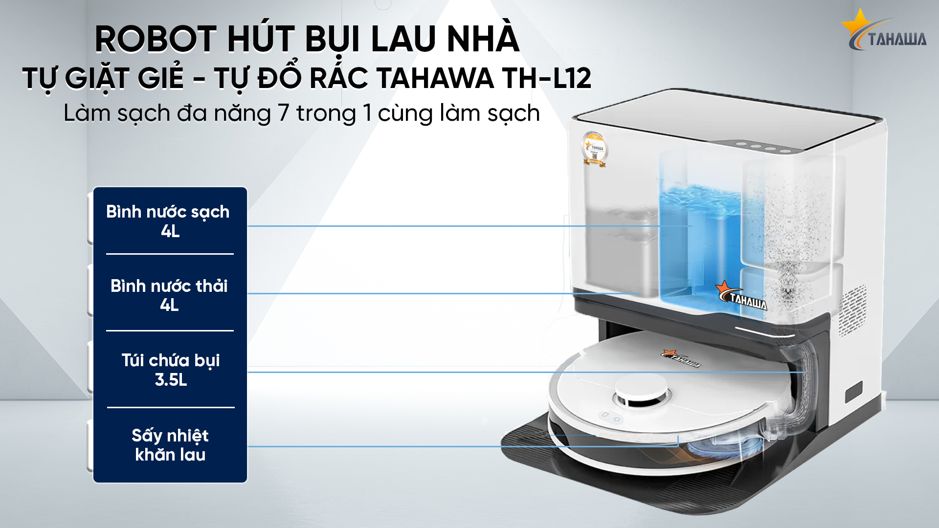 Robot hút bụi lau nhà tự động giặt giẻ Tahawa TH-L12 đa tính năng