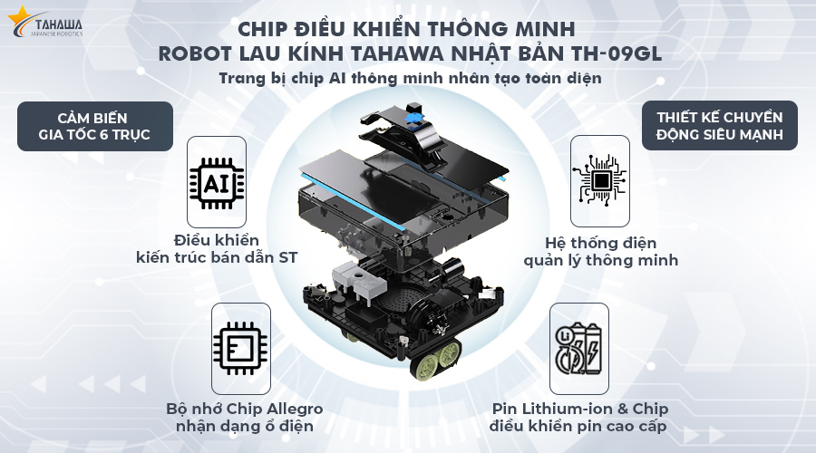 Tahawa TH-09GL được trang bị chip nhập khẩu thông minh nhân tạo toàn diện, cảm biến gia tốc sáu trục và thiết kế truyền động siêu mạnh, giúp hệ thống robot làm việc hiệu quả.