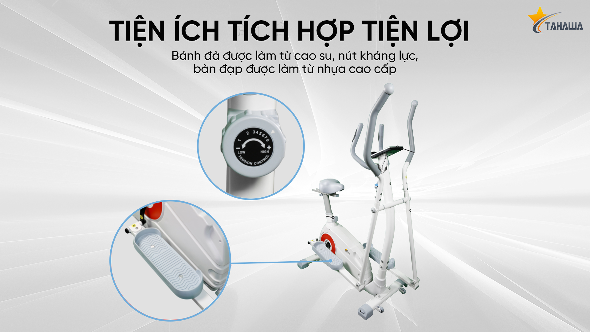 - Trang bị 8 mức kháng lực, đáp ứng được nhiều nhu cầu tập luyện khác nhau, hỗ trợ hiệu quả trong việc giảm Cholesterol xấu trong máu, đẩy nhanh quá trình lưu thông máu, đem đến một cơ thể tràn đầy năng lượng.